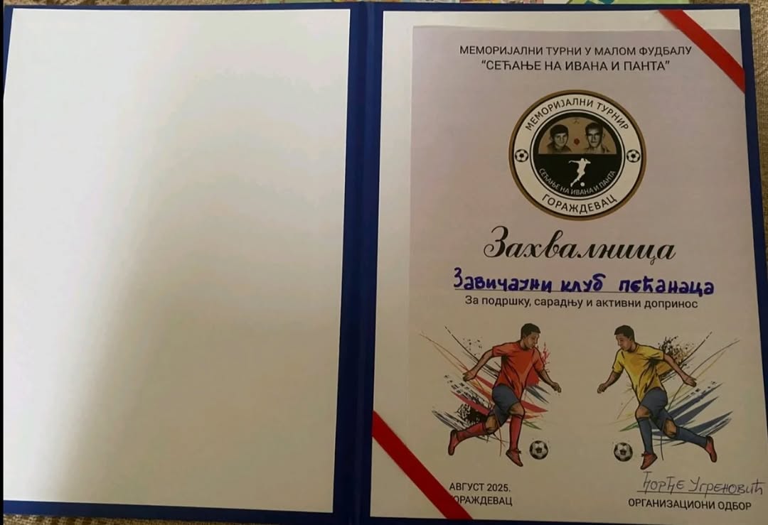 Завичајни клуб Пећанаца је подржао меморијални фудбалски турнир у Гораждевцу, што ће и убудуће радити подржавајући и друге активности младих.